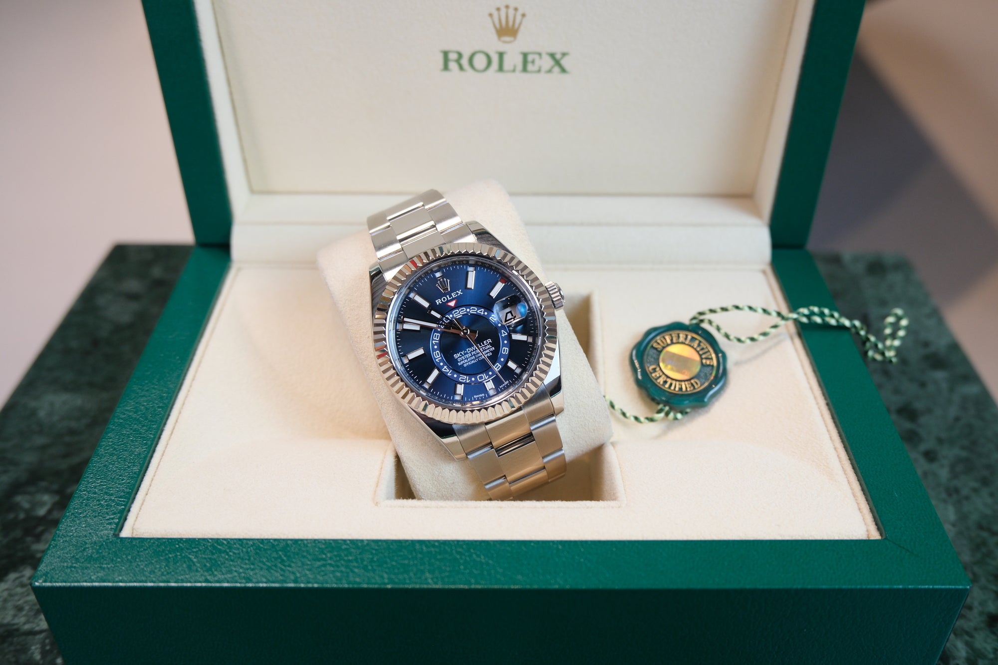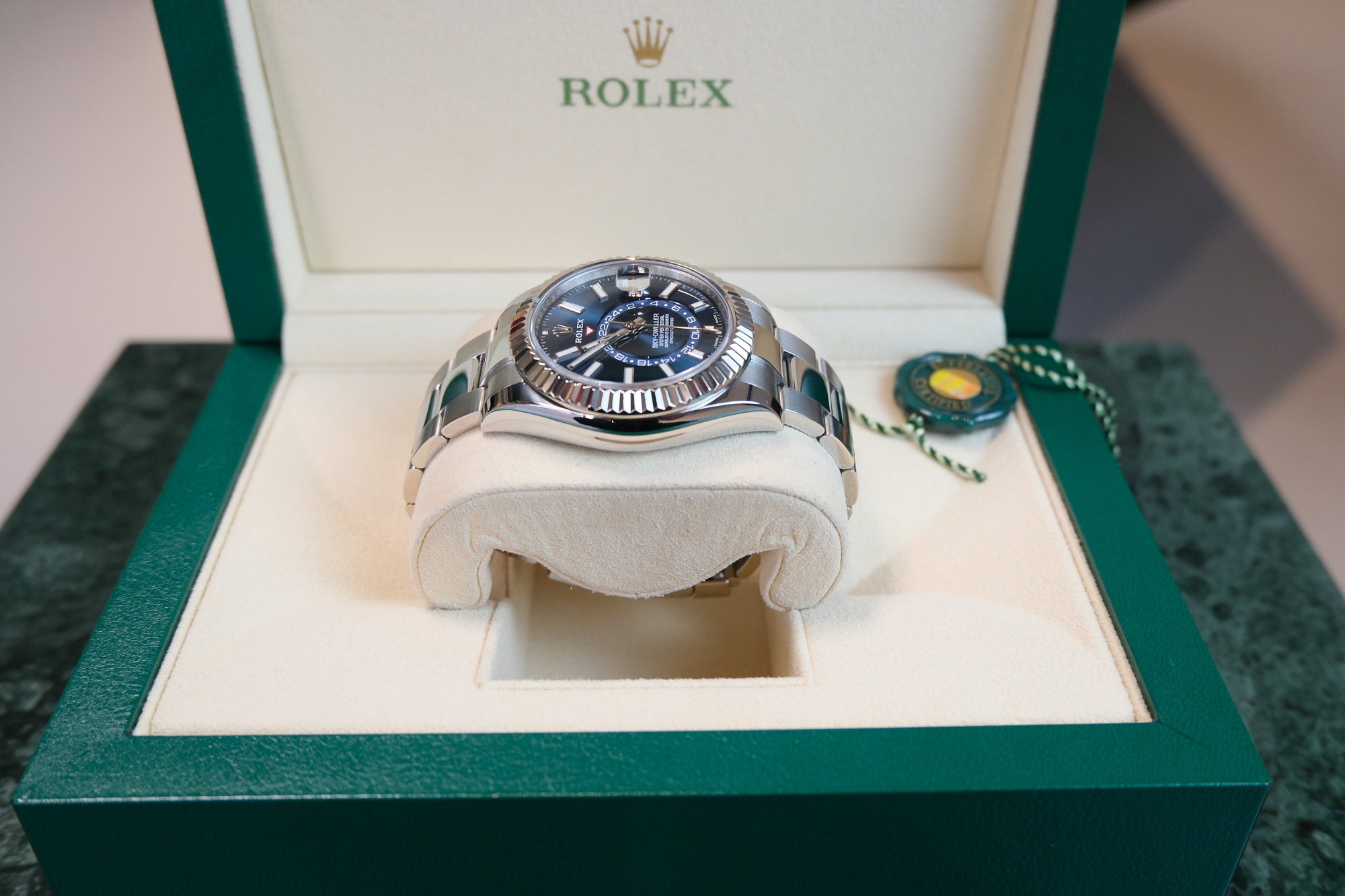 Elevate your wrist game with the Rolex Sky-Dweller Blue, a masterpiece that embodies luxury and sophistication. Hailing from the acclaimed 2020 collection, this timepiece is a testament to Rolex's legacy of precision and craftsmanship.
